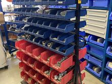 Pos.: 105 · 1 Fächerregal, doppelseitig, fahrbar, mit Inhalt Elektrozubehör