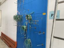 1 Posten Werkzeugtafeln / Lochbleche, 7 Stck., ca. 2.000 mm x 450 mm, m. div. Einhängebügeln