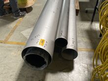 1 Posten Edelstahl-Rohre, bestehend aus 4 Rohren, Durchmesser: DN 350 mm, Länge: ca. 5.100 mm, Wandstärke: ca. 3 mm, Güteklasse: 1.4571, DN 170 mm / 5.280 mm / Wandstärke 2 mm / 1.4301, DN 220 mm / 4.200 mm / Wandstärke 2 mm / 1.4307, DN 270 mm / 2.550 mm / Wandstärke 2 mm