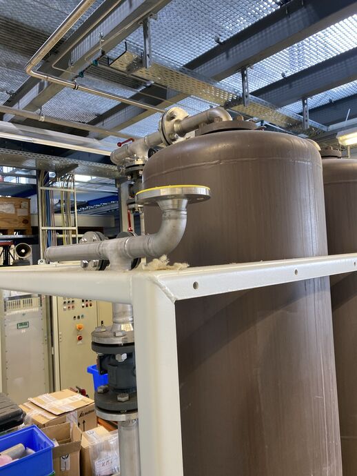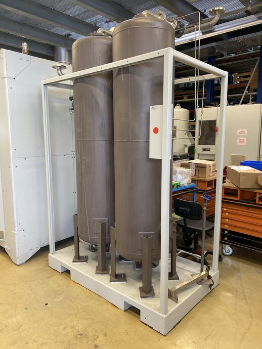 1 Aktivkohle-Reinigungsstation (Druck-Absorberanlage), Fabr. Delmas, Typ: 40510030001 A, Bj: 2003, Ser.-Nr.: 405-22115-10, zul. Betriebstemp.: ca. 100 °C, zul. Betriebsüberdruck: ca. 10 bar, Prüfüberdruck: ca. 143 bar, Rauminhalt; ca, 479 l, Leergewicht: ca. 210 kg, m. 2 Aktivkohlebehältern,
