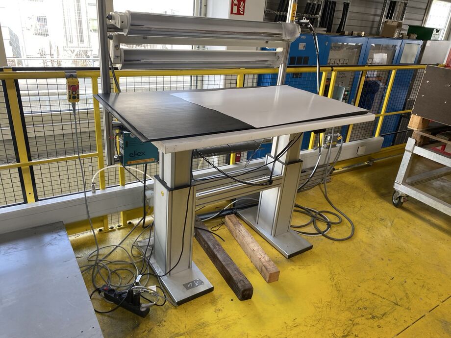 1 Arbeitstisch, elektr. höhenverstellbar, Arbeitsfläche: ca. 1.350 mm x 800 mm, m. Beleuchtung
