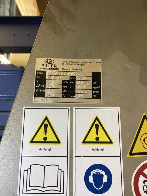 Pos.: 143 · 1 Einbaulüfter (Hochtemperatur-Industrieventilator), Fabr. Piller, Typ: 52573 UMBX 80400