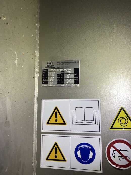 Pos.: 144 · 1 Einbaulüfter (Hochtemperatur-Industrieventilator), Fabr. Piller, Typ: 52573 UMBX 80400