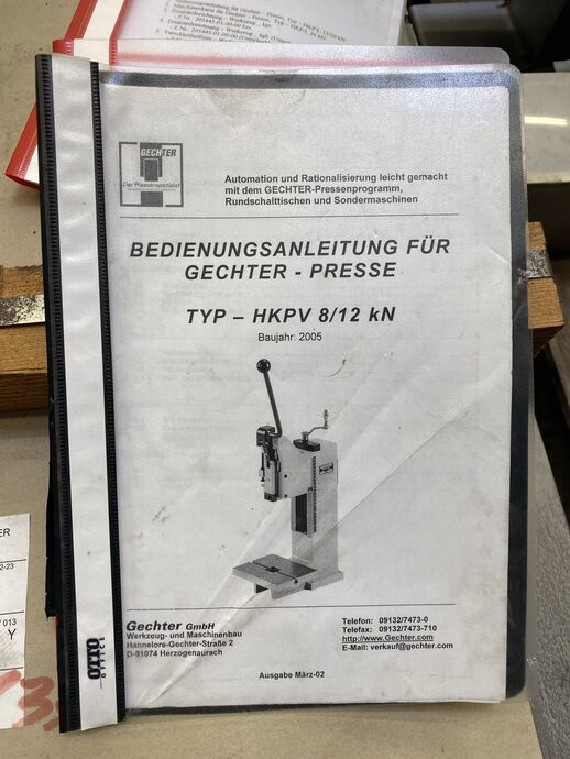 1 Hand-Kniehebelpresse, Fabr. Gechter, Typ: HKPV 8/12 kN, Bj: 2005, Ser.-Nr.: 35081