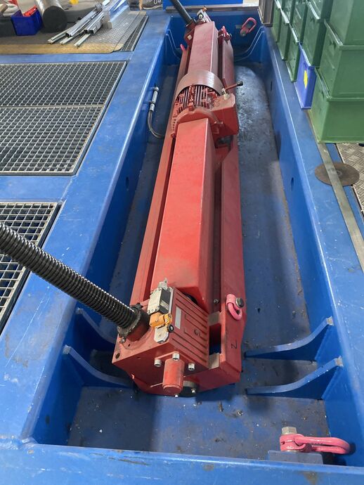 Fabr. SERAPID, Typ: Linklift 100, Bj: 2002, Hublast: ca. 7.000 kg, Kettenhub: ca. 3.500 mm, Hubgeschwindigkeit: ca. 40 mm/s, Schwenkbereich: ca. 90°
