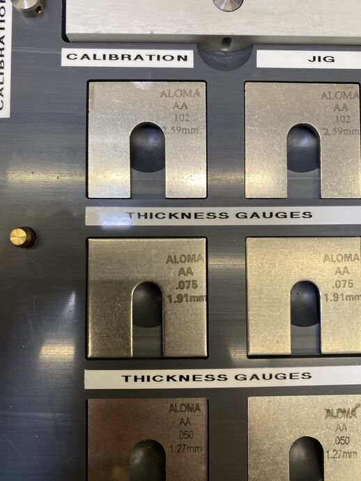 1 Kalibierungsset, m. verschiedenen Dickenmaßen, 2 x AA 102 - 2.59 mm, 2 x AA .075 - 1.91 mm, 2 x AA .050 - 1.27 mm, im Koffer