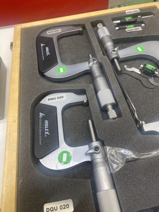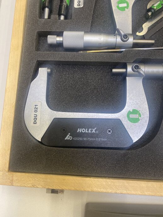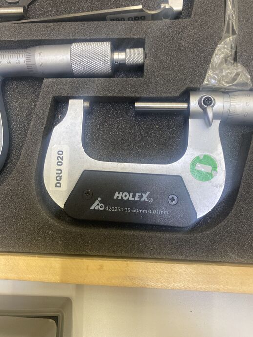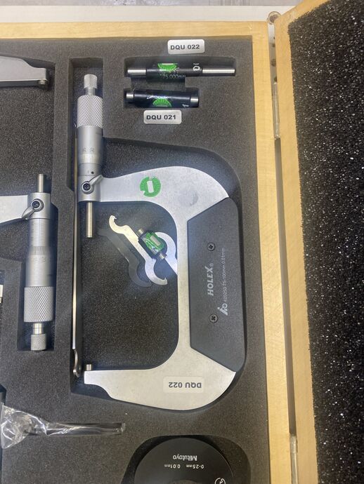 1 Messbügel-Set, Fabr. Holex, div. Größen, 0 - 25 mm 0.01 mm, 25 - 50 mm 0.01 mm, 50 - 75 mm 0.01 mm, 75 - 100 mm 0.01 mm, mit Prüfdornen, im Koffer