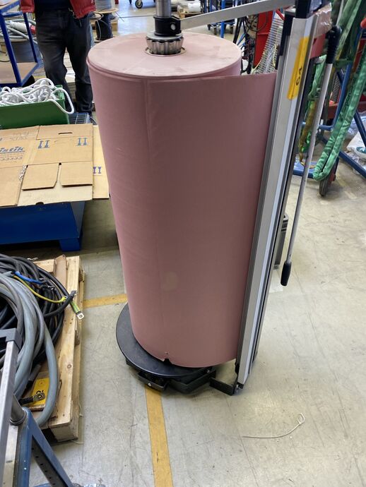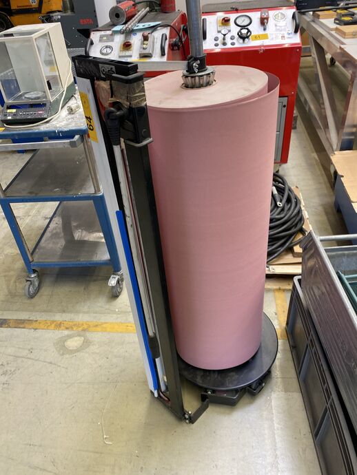 1 Papierabroller, fahrbar, m. Schneideeinrichtung und einer Rolle