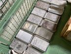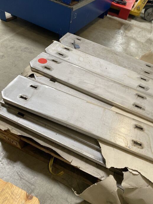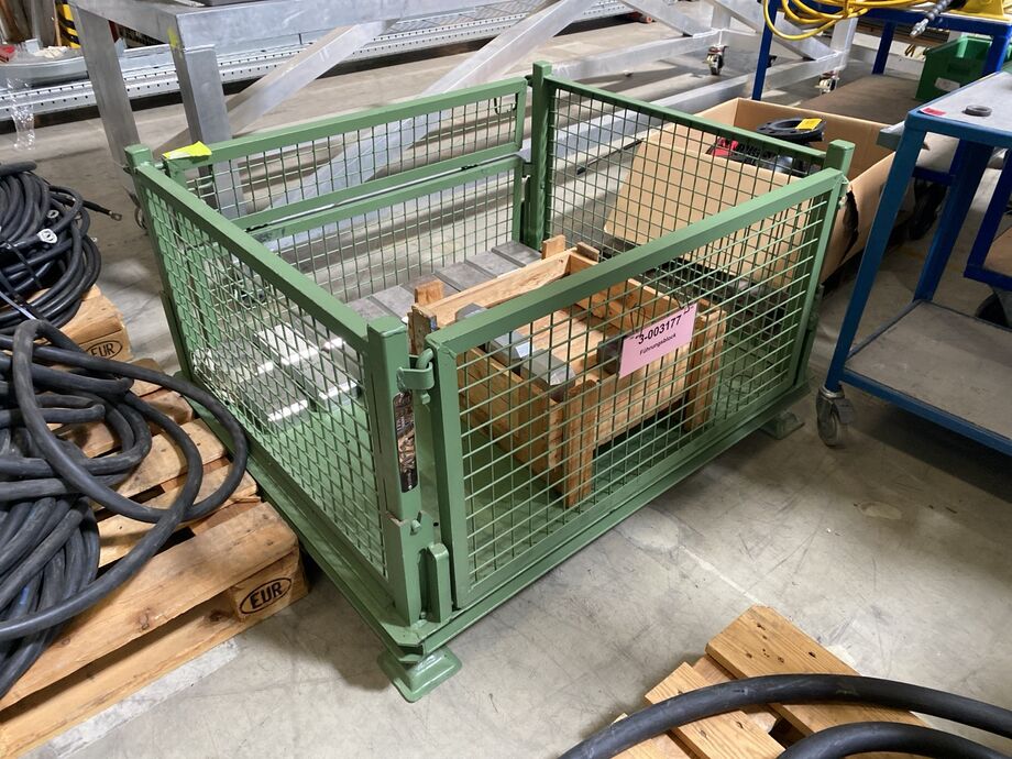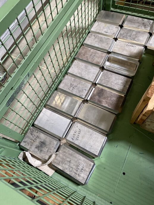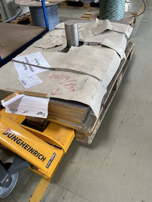 1 Posten Edelstahl-Material (Halbfertigerzeugnisse), Gew.: ca. 2.919 kg (inkl. Paletten), auf 4 Paletten und in 1 grünen Gitterbox