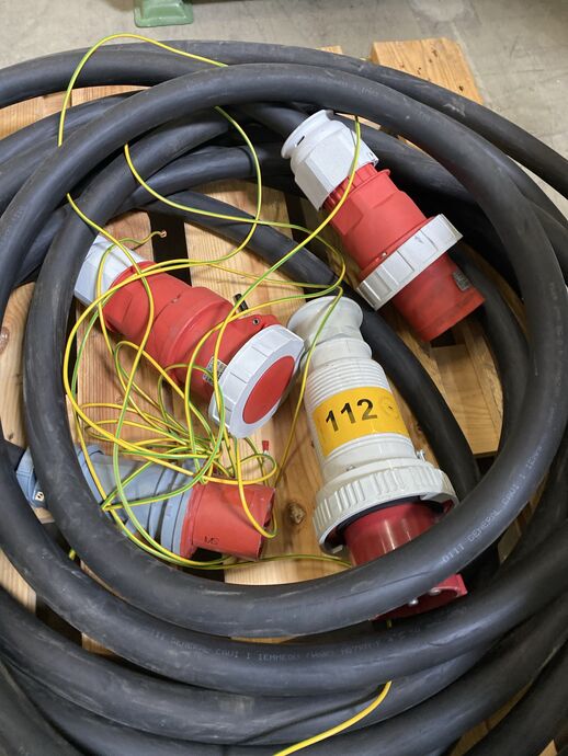 1 Posten Kraftstromkabel, Typ: General CAVI H07 RN-F 4 G 50 mm², m. 4 x 125 A-Steckern, Gew. m. Palette: ca. 83 kg