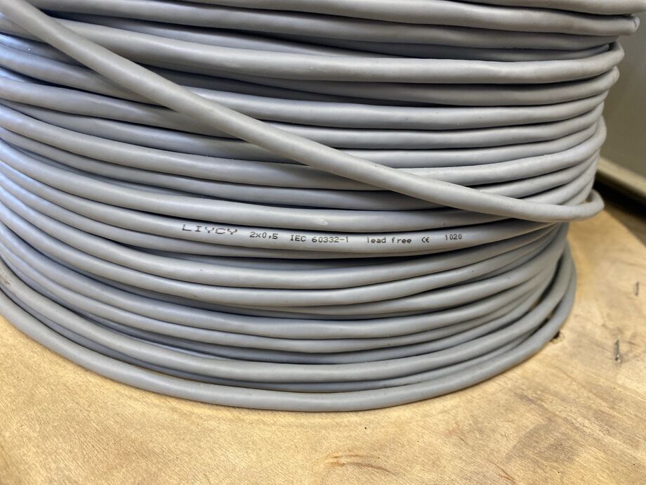 1 Posten Steuerkabel, geschirmt, LiXYCY 2 x 0,5 mm² IEC 60332-1 lead free 1020, Gew.: ca. 19 kg, ca. 350 m