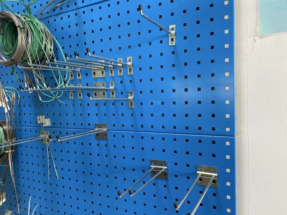 1 Posten Werkzeugtafeln / Lochbleche, 7 Stck., ca. 2.000 mm x 450 mm, m. div. Einhängebügeln
