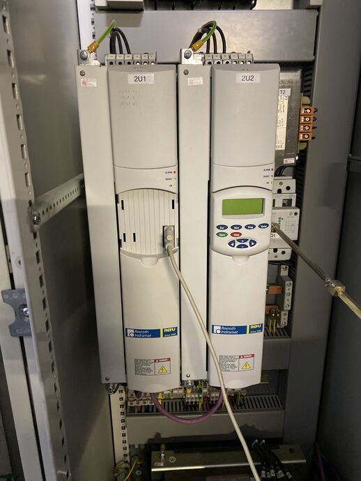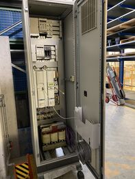 1 Schaltschrank (Teststand / Recyclegebläse), Fabr. Rittal, fahbar, Schrankmaße: 2.400 mm x 600 mm x 600 mm, inkl. Rollen, m.Frequenzumrichter, Drosselspule, Hauptschalter, Sicherungen und Lüfter, m. 1 langem Anschlusskabel, m. 125 A-Stecker