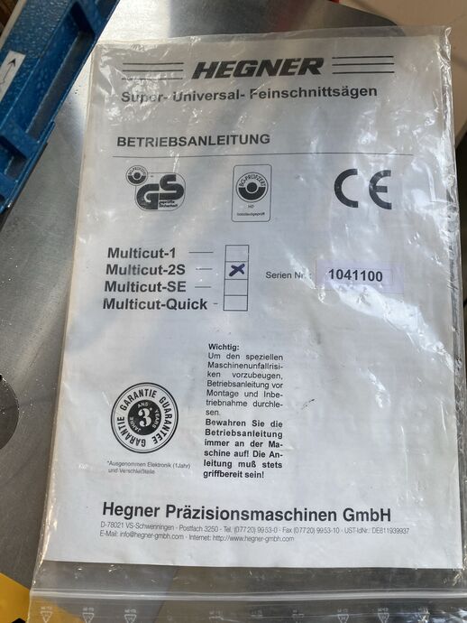 1 Super-Universal-Feinschnittsäge (Dekupiersäge), Fabr. Hegner, Typ: Multicut-2S, Bj: 2003, Masch.-Nr.: 1034442