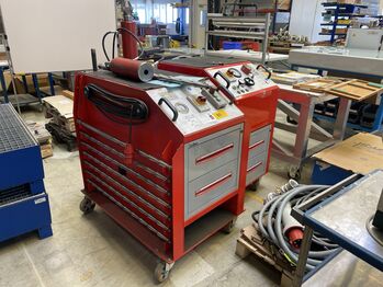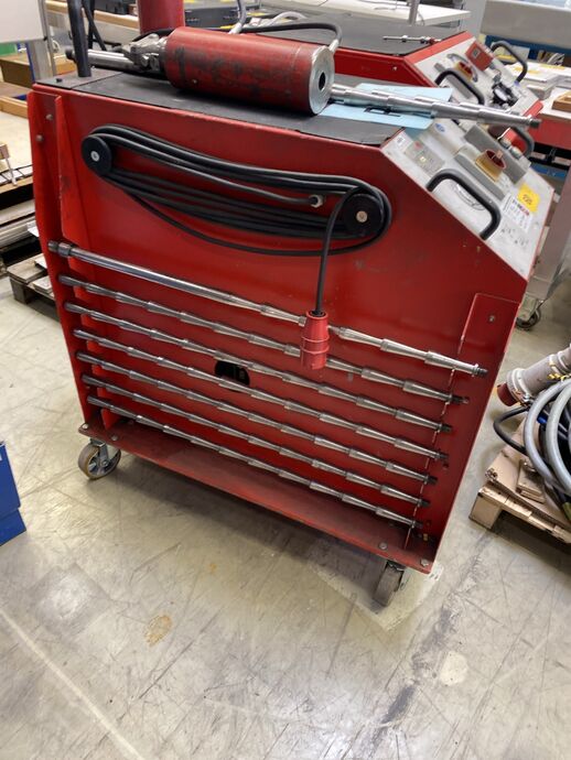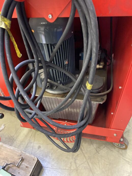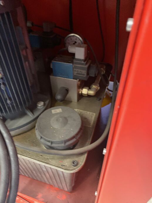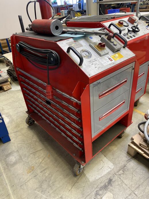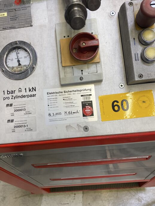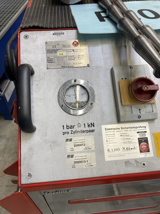 1 Zug- und Richtgerät, hydr., Fabr. Reiter, Bj: 2002, Ser.-Nr.: 02104, 50 Hz, 400 V, 4 kW, max. 300 bar, Gew. ca. 180 kg, m. Unterschrank, Fabr. Sortimo, m. div. Einsätzen, Zugstangen und 2 Presszylindern
